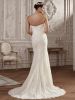 La femminilità diventa abito in questo sensuale modello di abito da sposa a sirena in tulle e pizzo con particolari di strass e una seducente scollatura a cuore.