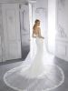 Il romanticismo del pizzo si esprime in tutta la sua meraviglia in questo stupendo abito da sposa a sirena con corpetto effetto bustier sapientemente lavorato con applicazioni floreali. Il modello è completato da sovragonna in tulle impalpabile rifinito da un delicato bordo in pizzo smerlato.