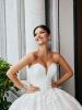 Romantico e sensuale, una rivisitazione moderna del classico abito da sposa. Il corpetto è caratterizzato da un'iconica scollatura a cuore e il meraviglioso pizzo di ispirazione floreale viene messo in risalto dalla preziosa organza della gonna. Un look totalmente etereo.