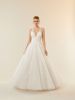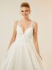 Cristalli abbaglianti e ricami di perline accentuano magnificamente il corpetto a V profonda sul nostro abito da sposa. Caratterizzato da delicate spalline e pizzo chantilly. La gonna in tulle e organza glitterata crea uno straordinario effetto scintillante.