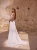 Lo stile moderno incontra il glamour discreto in questo nostro abito da sposa in chiffon. Il corpetto trasparente e destrutturato presenta un pizzo floreale ricamato a mano e delicate bretelline sulla schiena. Il tutto è completato da uno stupendo strascico regale che termina con un favoloso inserto di pizzo smerlato.