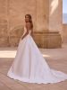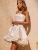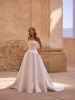 L’abito che non ti aspetti, un tocco magico e sorprendente per l’outfit di questo abito da sposa. Ѐ strabiliante la grande trasformazione che si riesce ad ottenere grazie alla sovragonna a palloncino in mikado che regala la possibilità di avere due abiti in uno, giocando con i volumi del modello corto con fiori effetto 3D della parte inferiore.
