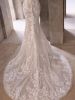 Pensato per farsi notare, questo abito a sirena combina un collo all’americana con una schiena scoperta che aggiunge freschezza e sensualità. Le applicazioni floreali in pizzo su tulle creano una texture ricca e avvolgente, perfetta per una celebrazione elegante e moderna. Completano il look un profondo spacco e maniche in pizzo staccabili.