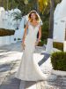 Favolosa silhouette a sirena. Un incredibile abito da sposa in tulle e pizzo che slancia ed esalta la femminilità delle curve. Il sovragonna e le maniche staccabili, in morbido tulle, conferiscono un tocco elegante e, contemporaneamente, molto romantico a questo splendido modello. La schiena è definita da un’ampia scollatura.