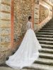 Abito da sposa per una vera principessa, presenta una romantica linea A-line. Dall'elegante collo alto ai dettagli illusione e maniche lunghe effetto tattoo, questo romantico modello è un classico ma allo stesso tempo moderno, grazie allo scintillante tulle glitterato sulla gonna.