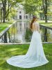 L'inaspettato look per il giorno del matrimonio. Quest’ abito presenta un delizioso corpetto trasparente con maniche lunghe effetto tattoo e un bellissimo pizzo floreale ricamato con perline di cristallo. I pantaloni slim in crêpe sono sapientemente realizzati per adattarsi al corpo e offrire un cenno elegante e moderno. Una sopragonna in tulle staccabile regala quel giusto tocco in più di romanticismo.