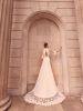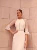 Questo abito dalla linea scivolata presenta molti elementi in stile boho che gli conferiscono un'aria davvero romantica. Realizzato in morbido e ondeggiante chiffon con corpetto in pizzo guipure e tulle a pois è rifinito da un bordo in pizzo geometrico. Girocollo di tendenza e divine maniche a campana si abbinano perfettamente al volume leggero della gonna che termina con uno spettacolare strascico in pizzo.