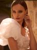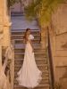 Abito da sposa scivolato in leggerissima organza con manica a palloncino staccabile. Il corpino, magnificamente ricamato, è caratterizzato dallo scollo a V e dal dettaglio della schiena scoperta con bottoni a vista.